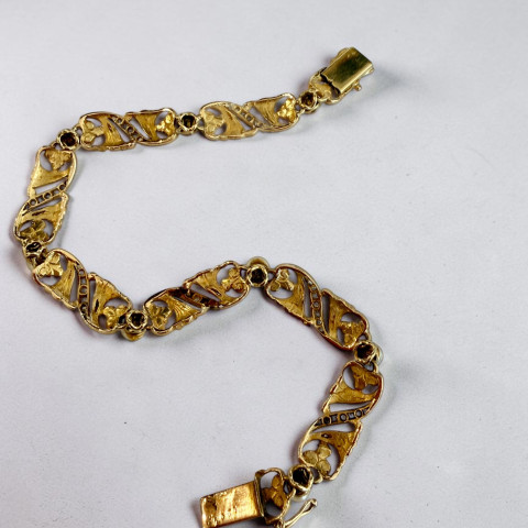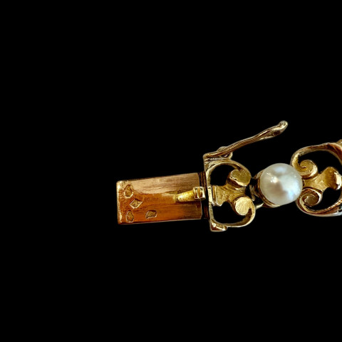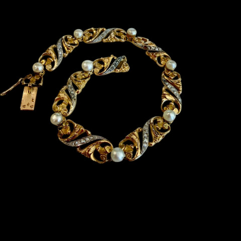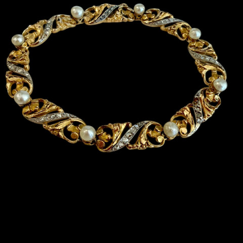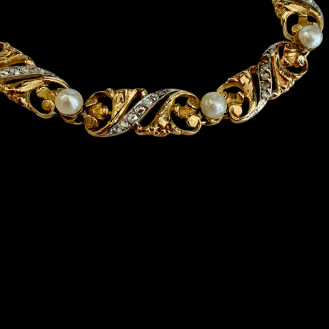 Bracelet Art-Nouveau en or, diamants et perles fines