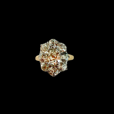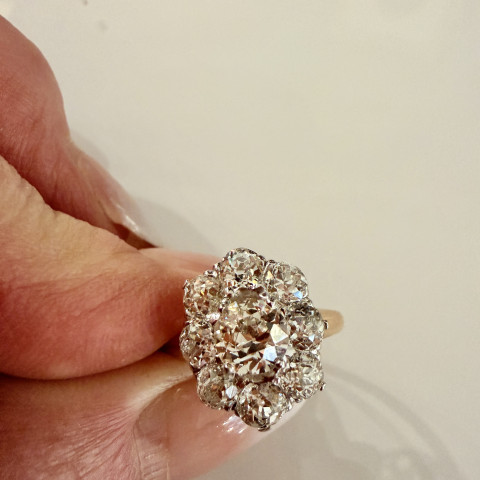 Le centre calibre 0,90 carat environ, il est entouré de huit autres pour un poids de 1,50 carats environ.